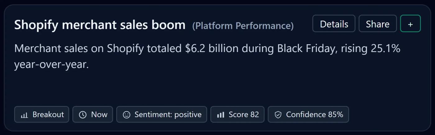 Shopify merchants saw record-breaking momentum, generating $6.2 billion in Black Friday sales—a 25.1% year-over-year increase.