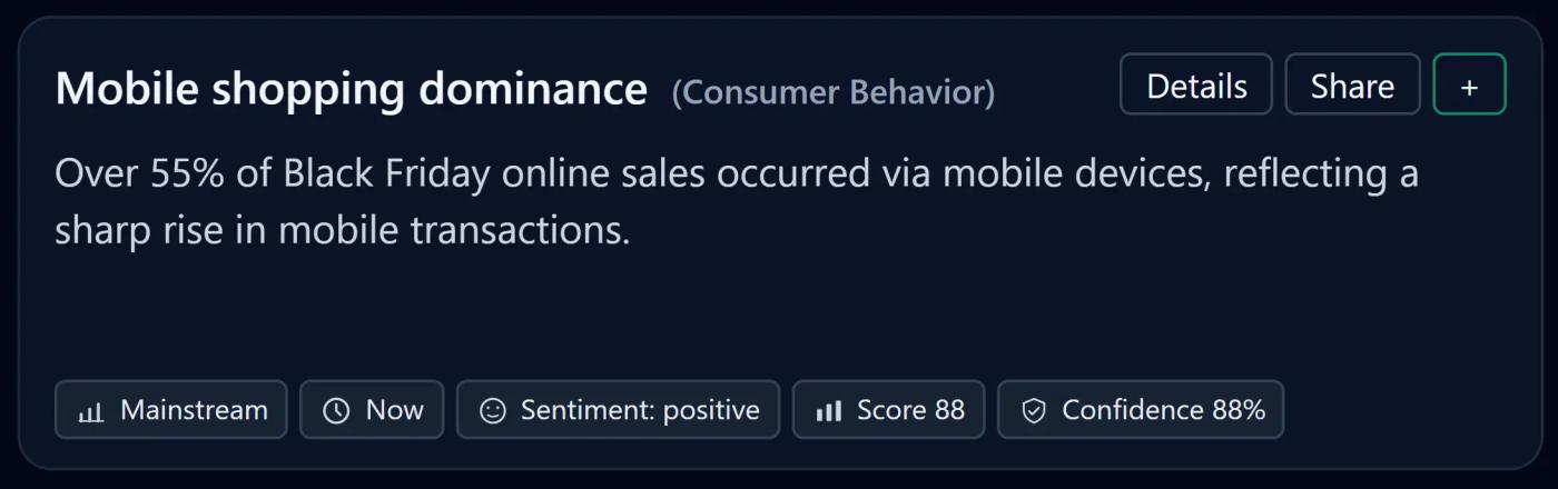More than 55% of Black Friday purchases happened on mobile devices—solidifying mobile as the primary shopping channel in the U.S.