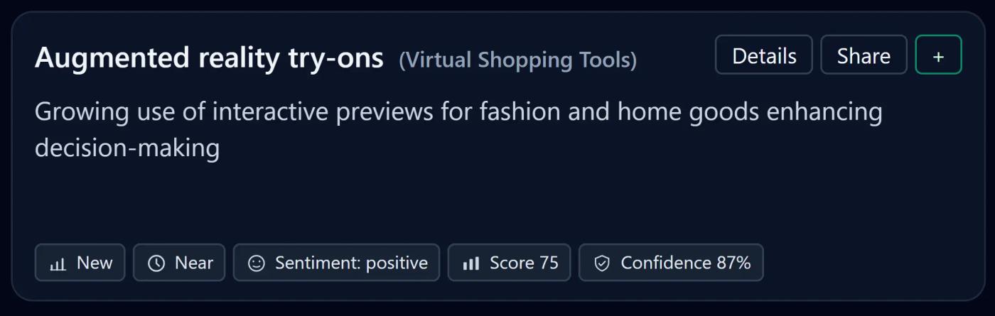 AR is transforming digital decision-making, especially in categories like fashion, beauty, eyewear, and home goods. This fashion retail innovation is helping customers make more confident purchase decisions.
