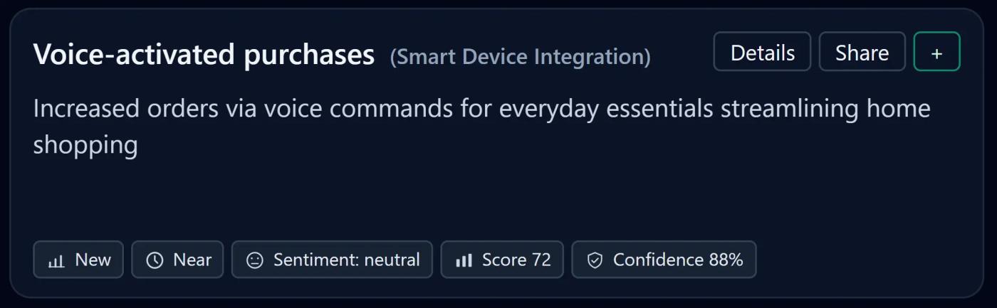 With 88% confidence, voice-activated purchasing is on track to become a core micro-behavior in home shopping.