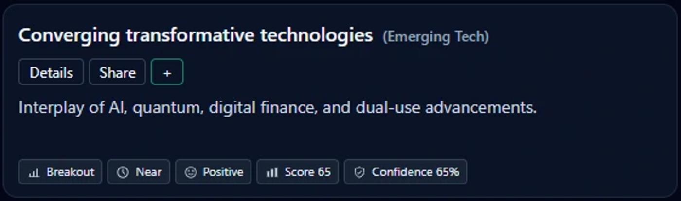 - Nascent-to-breakout with concentrated adoption in finance-adjacent domains and digital asset infrastructure