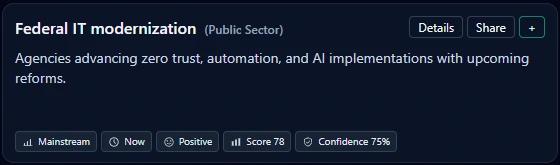 - Federal IT modernization becomes a proving ground for constrained transformation
