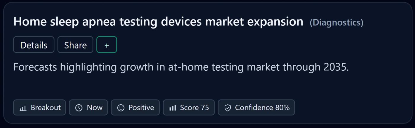 Why it matters: Easier diagnosis increases category throughput. More testing means more treatment starts—whether that’s CPAP, oral appliances, surgery, lifestyle changes, or now medication.