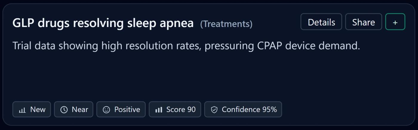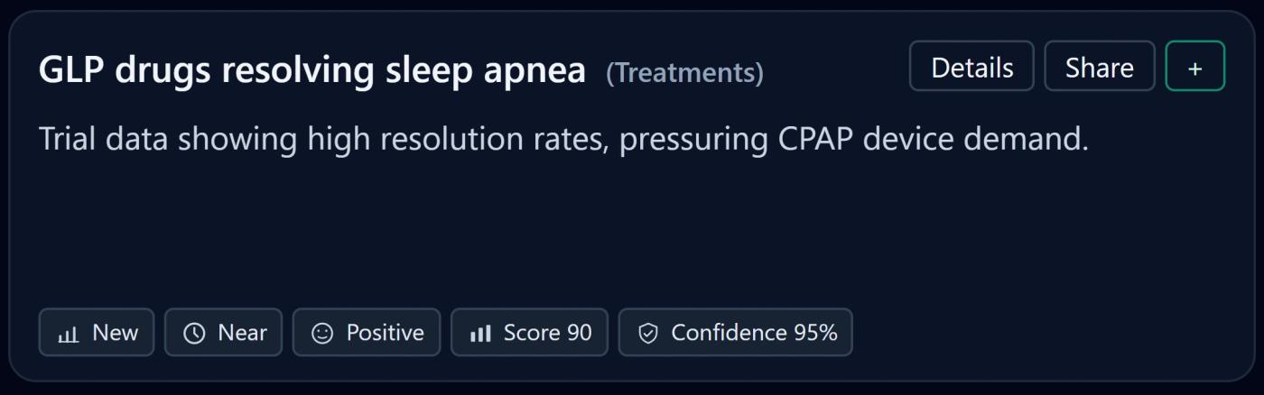 Why it matters: Sleep apnea may shift from being treated primarily as a device-first condition to a multi-modal metabolic condition, changing the entire ecosystem.