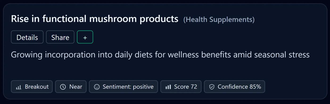 The rapid growth of this category highlights a broader acceptance of food-as-function, especially when benefits are framed in accessible, non-intimidating language.