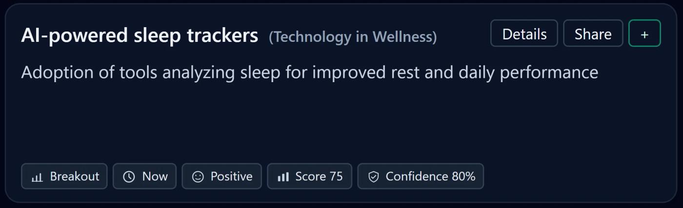 Sleep has become a top wellness priority, and AI-powered sleep trackers are accelerating adoption. Devices and platforms now analyze sleep stages, recovery patterns, and behavior to deliver predictive coaching and personalized recommendations.