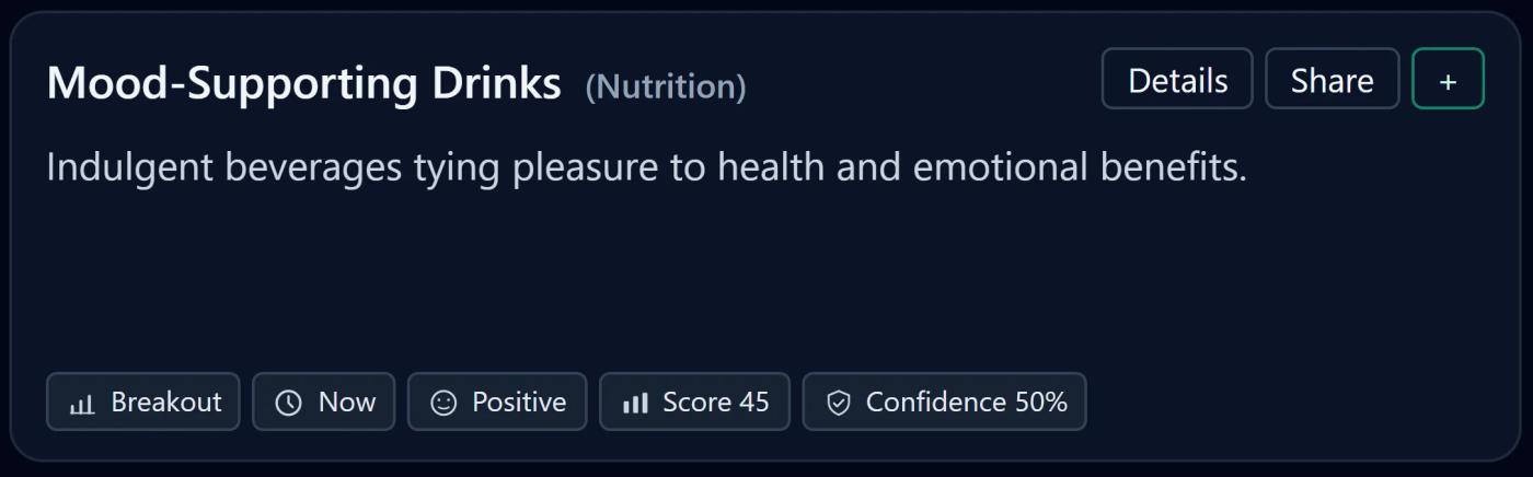 Beverages are emerging as emotional wellness tools. Mood-supporting drinks that combine indulgence with functional ingredients—such as adaptogens, botanicals, and nootropics—are reframing how consumers approach relaxation and pleasure.