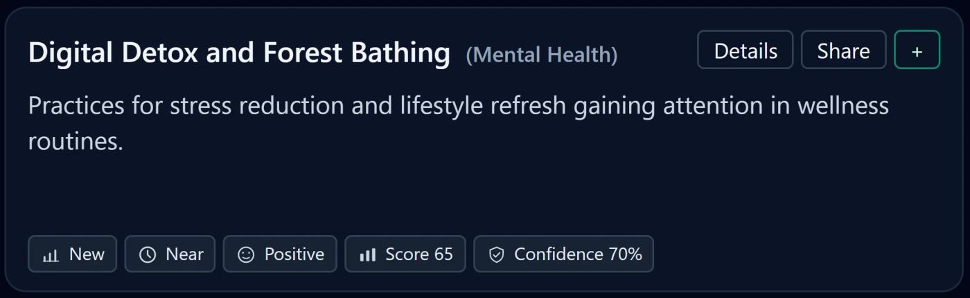 As screen fatigue and cognitive overload rise, consumers are turning to intentional disconnection. Digital detox practices—paired with nature-based activities like forest bathing—are gaining attention as tools for stress reduction and mental reset.