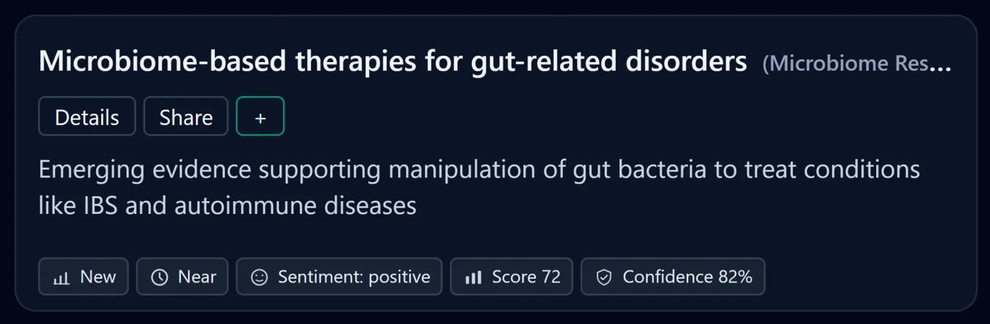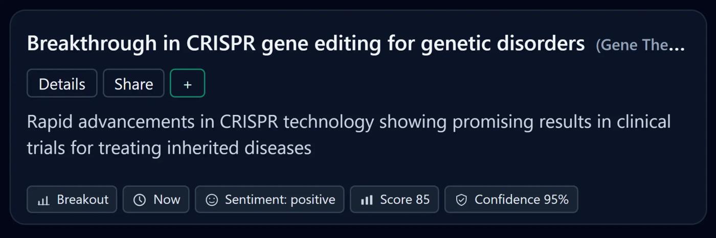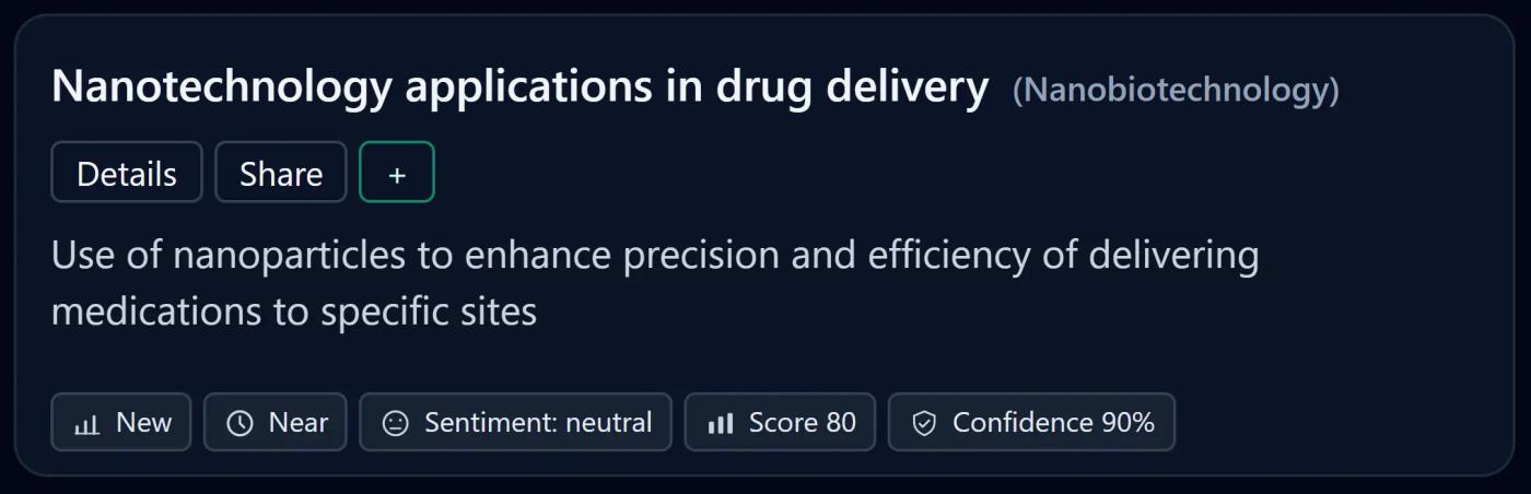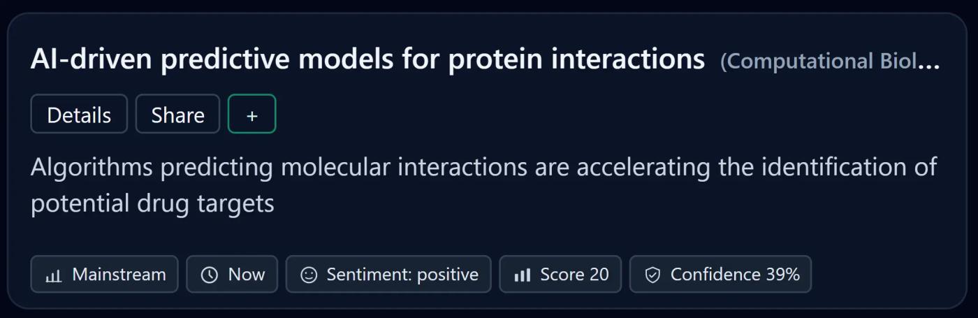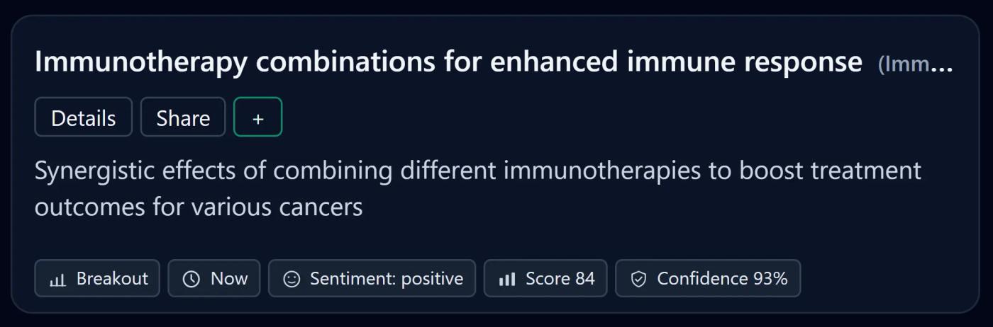 Our engine monitors millions of global signals across scientific research, creator ecosystems, investor behavior, and market dynamics to reveal what’s rising early.